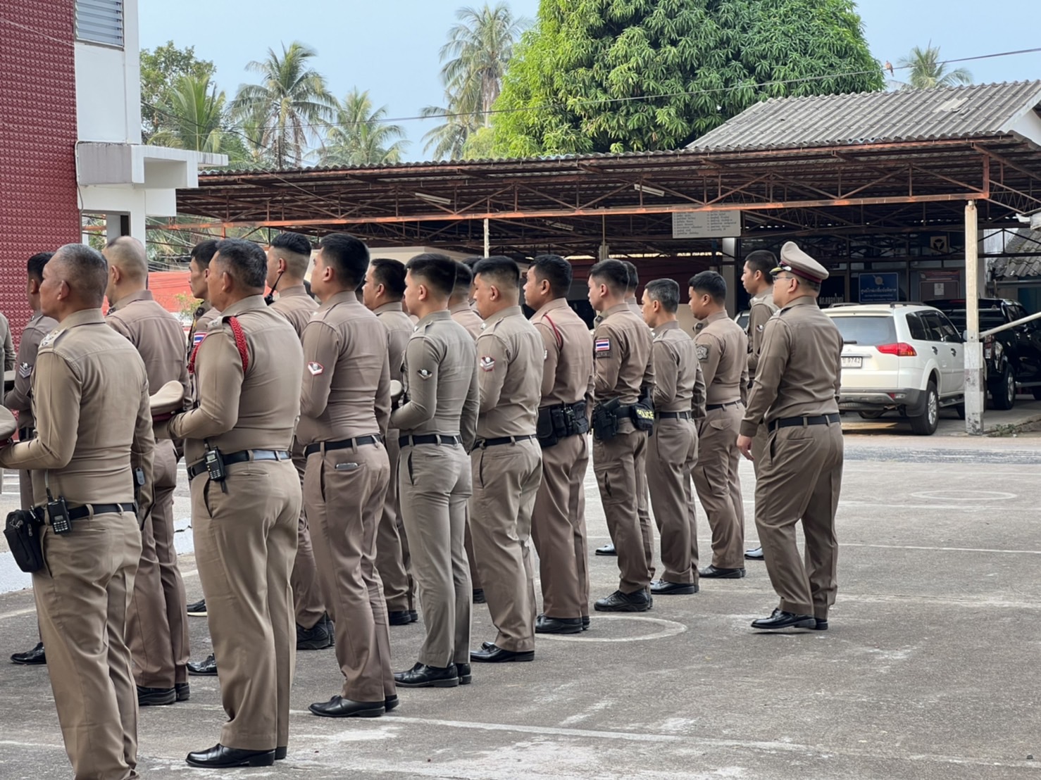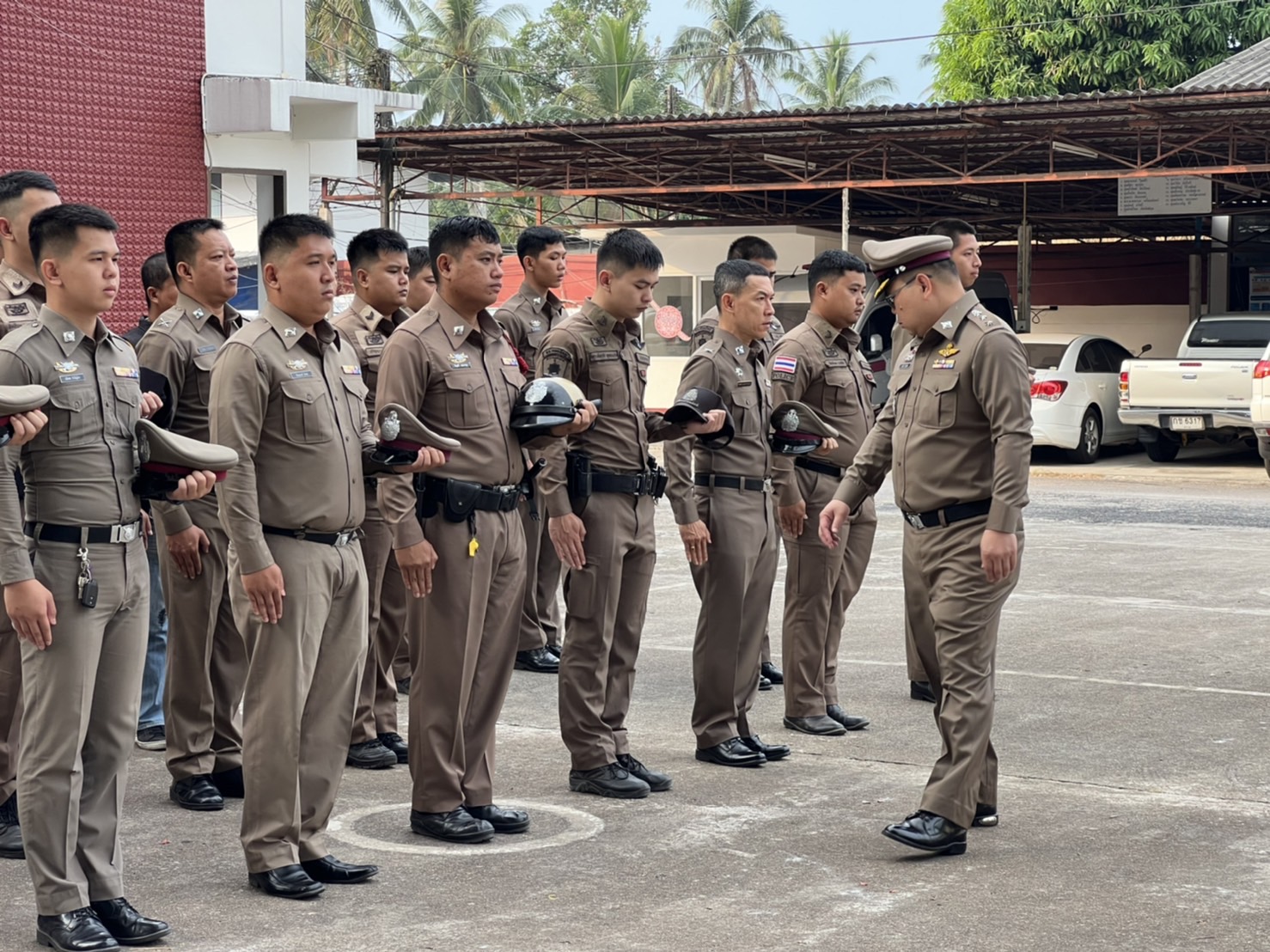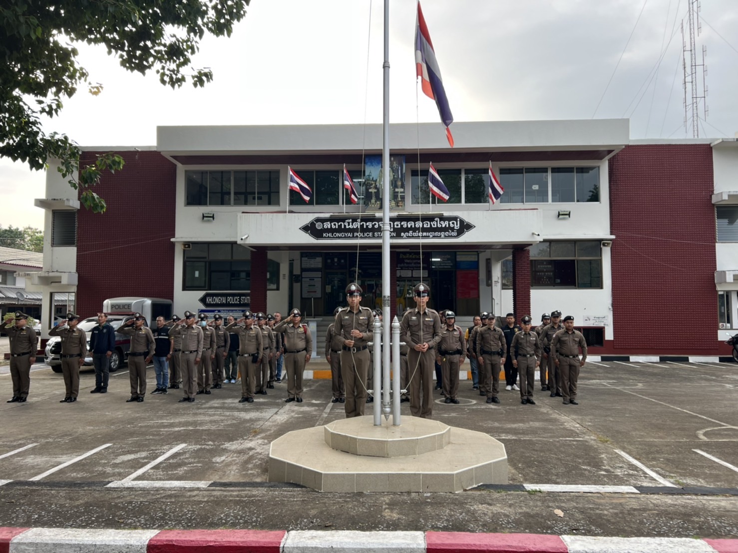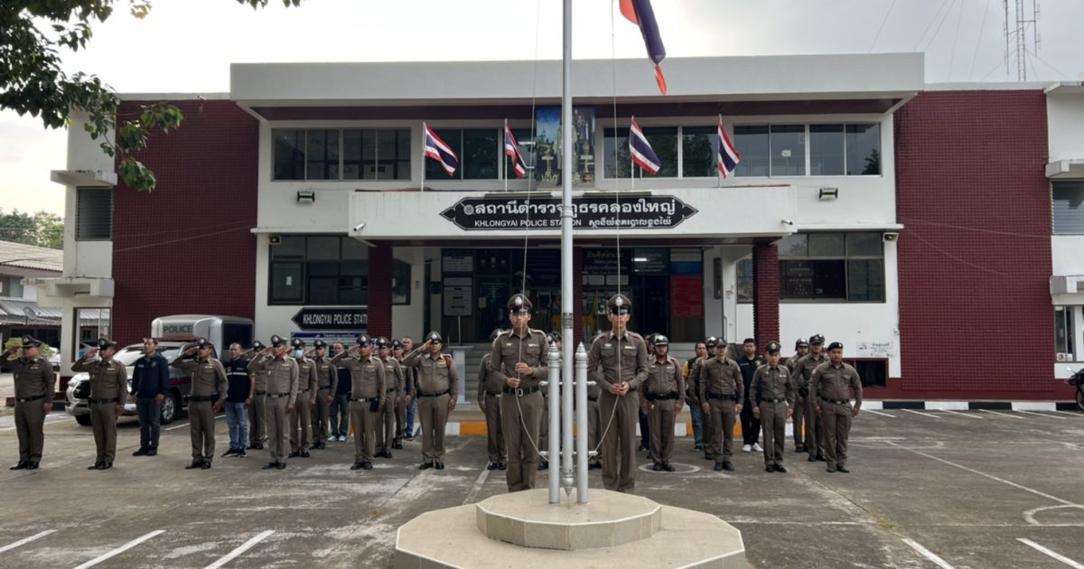 เข้าแถวเคารพธงชาติ 22 ม.ค.67 22 มกราคม 2024 โดย khlongyai_police / ข่าวประชาสัมพันธ์,ข่าวกิจกรรมจิตอาสา พ.ต.อ.สมชิต วินทะไชย ผกก.สภ.คลองใหญ่ พ.ต.ท.วิทยา คุ้มวงษ์ รอง ผกก.ป.สภ.คลองใหญ่ นำข้าราชการตำรวจ สภ.คลองใหญ่ เข้าแถวเคารพธงชาติ สวดมนต์ไหว้พระ กล่าวคำ ปฏิญาณฯ อุดมคติตำรวจ ตรวจเครื่องแบบ กายแต่งกายและทรงผม ณ หน้าที่ทำการ สภ.คลองใหญ่ เมื่อวันจันทร์ที่ 22 ม.ค.2567 เวลา 08.00 น.