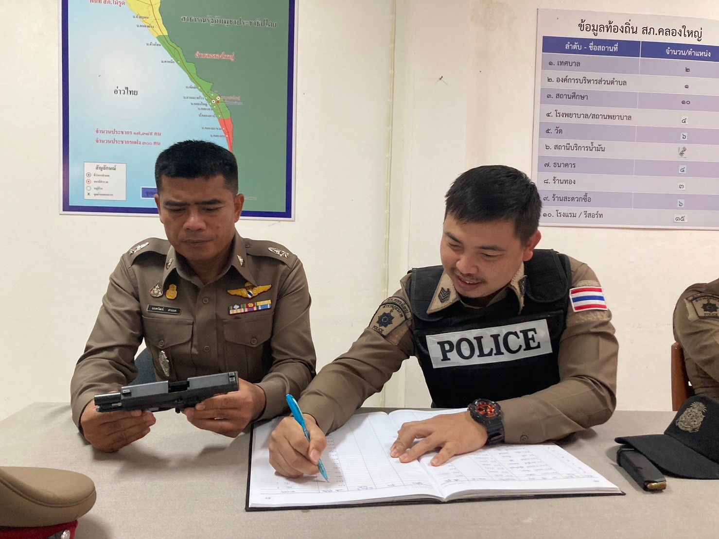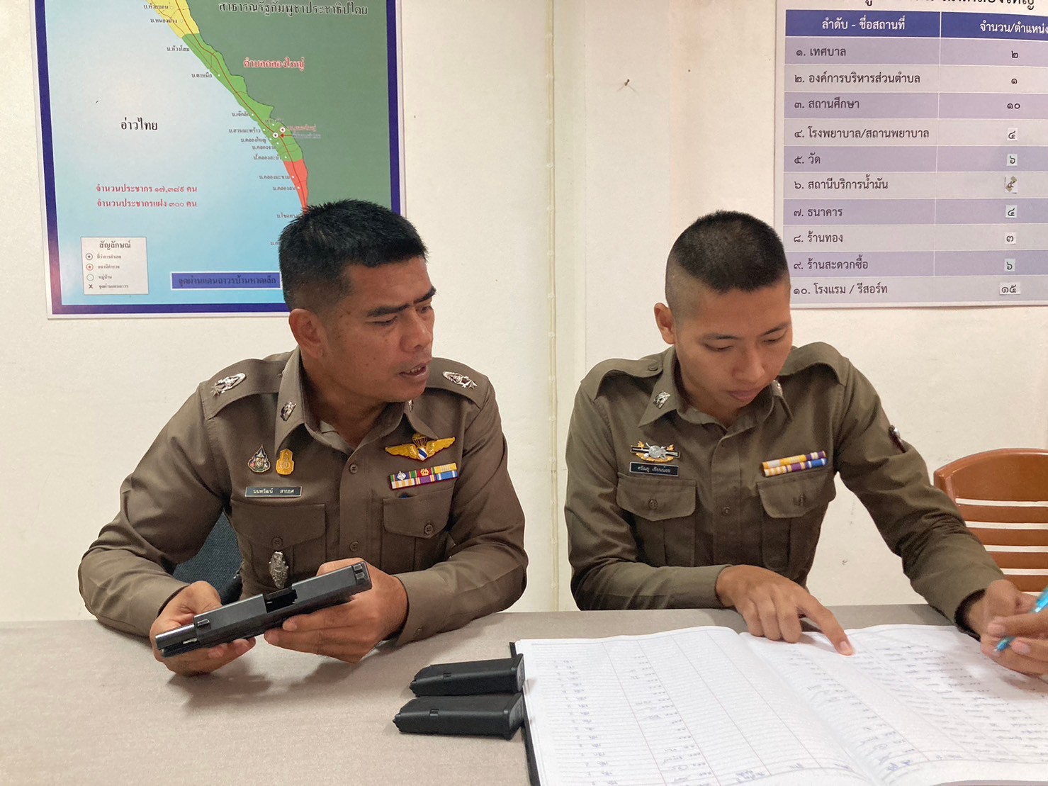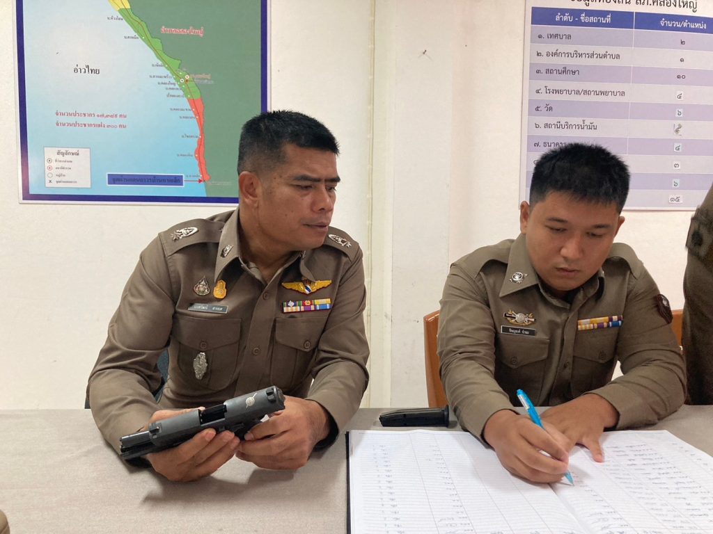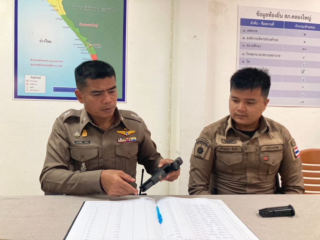 ตรวจอาวุธปืน ที่ข้าราชการตำรวจเบิกใช้ปฏิบัติหน้าที่ 29 มกราคม 2024 โดย khlongyai_police / ข่าวประชาสัมพันธ์,งานธุรการและกำลังพล วันที่ 29 ม.ค.2567 เวลา 10.00 น. พ.ต.ท.วิทยา คุ้มวงษ์ รอง ผกก.ป.สภ.คลองใหญ่ พ.ต.ต.นนทวัฒน์ สายยศ สวป.สภ.คลองใหญ่ ได้เรียกตรวจสอบอาวุธปืน ที่ข้าราชการตำรวจเบิกไปใช้ในการปฏิบัติหน้าที่