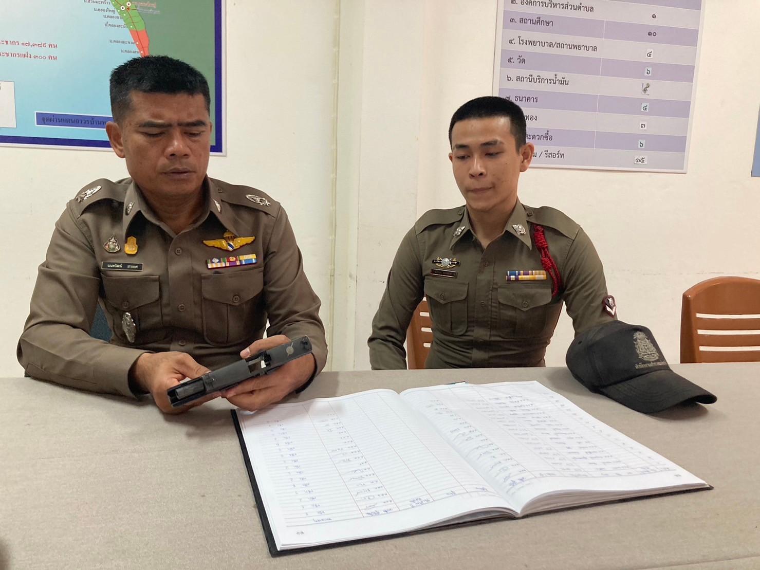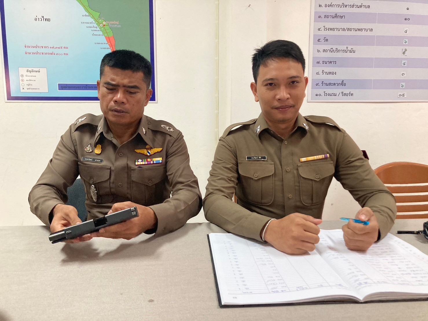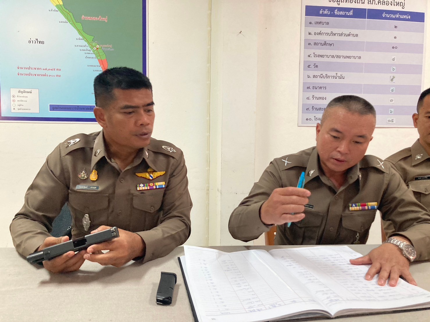 ตรวจอาวุธปืน ที่ข้าราชการตำรวจเบิกใช้ปฏิบัติหน้าที่ 29 มกราคม 2024 โดย khlongyai_police / ข่าวประชาสัมพันธ์,งานธุรการและกำลังพล วันที่ 29 ม.ค.2567 เวลา 10.00 น. พ.ต.ท.วิทยา คุ้มวงษ์ รอง ผกก.ป.สภ.คลองใหญ่ พ.ต.ต.นนทวัฒน์ สายยศ สวป.สภ.คลองใหญ่ ได้เรียกตรวจสอบอาวุธปืน ที่ข้าราชการตำรวจเบิกไปใช้ในการปฏิบัติหน้าที่