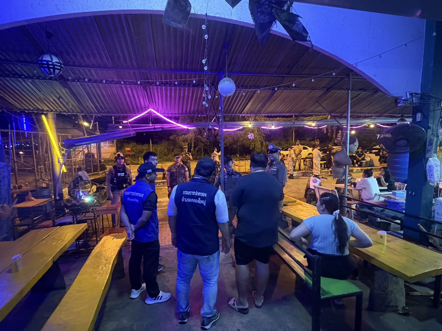 รอง ผกก. ป. สภ.คลองใหญ่ สั่งการให้ พ.ต.ต.นนทวัฒน์ สายยศ สวป. สภ.คลองใหญ่ พร้อม ร้อยเวร ๒๐ , สายตรวจชุดที่ ๒ เจ้าหน้าที่ฝ่ายปกครอง ทหาร และผู้นำชุมชน ว.๔ ร้านอาหาร สถานบริการ ในเขตพื้นที่รับผิดชอบ ไม่พบการกระทำความผิดพร้อมกำชับให้ปฏิบัติตามข้อกฎหมายกำหนด