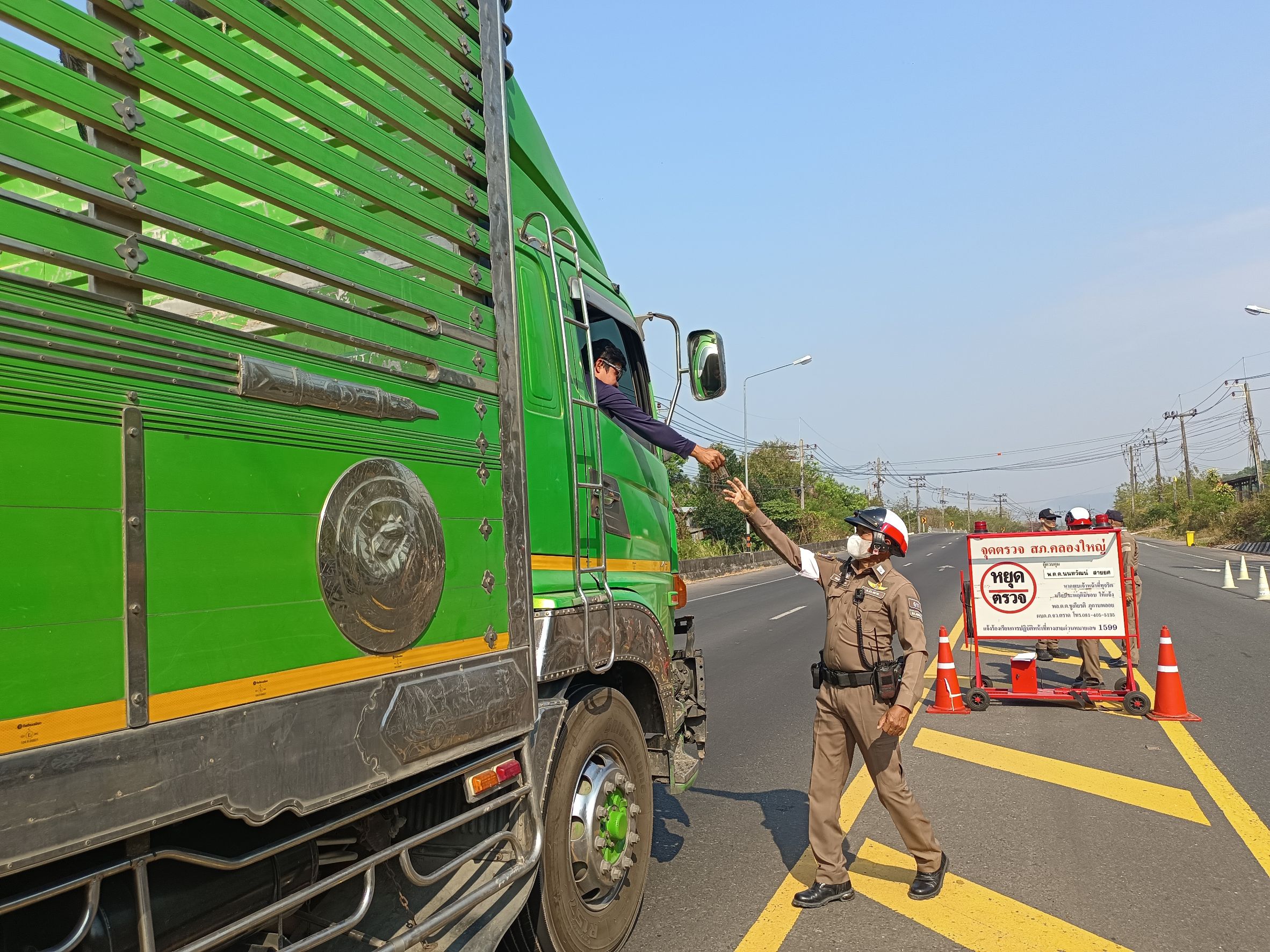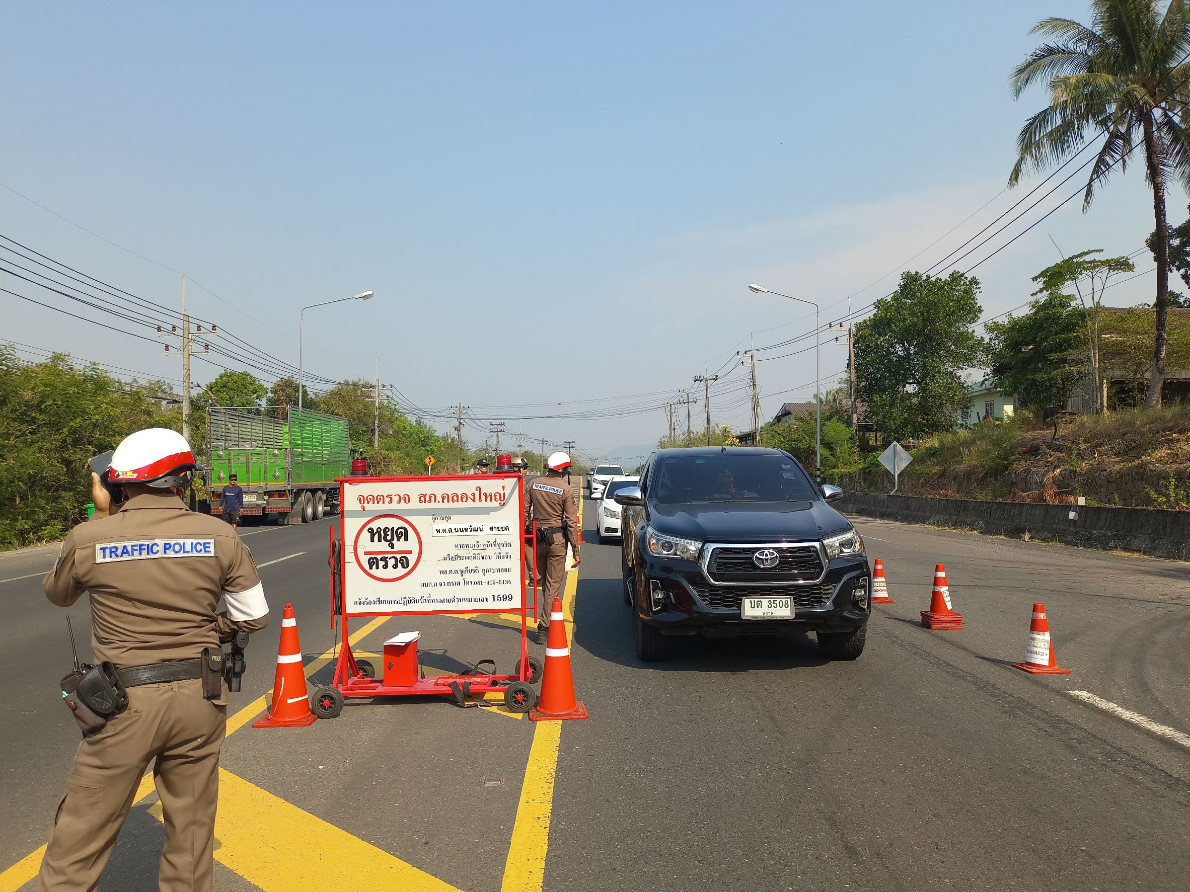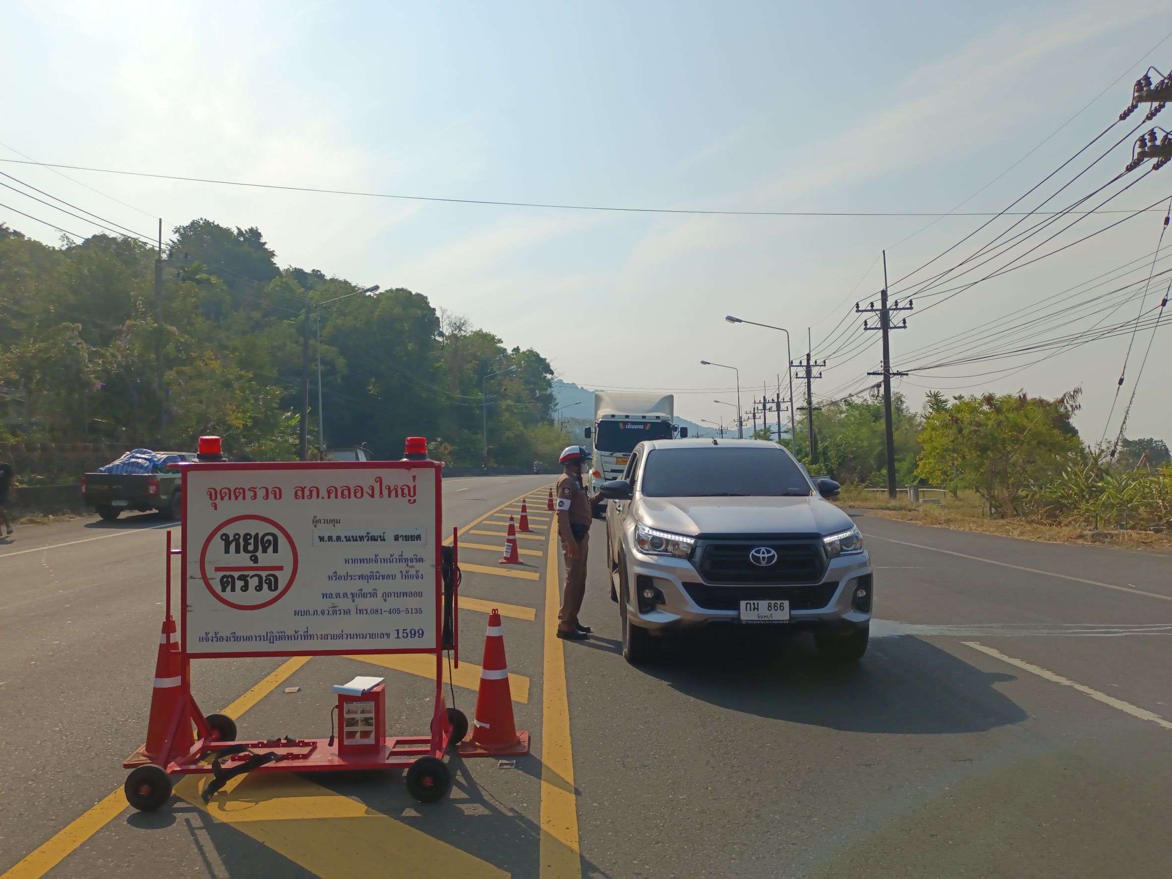 วันนี้(12 ก.พ. 2568) เวลา09.01น. ภายใต้การอำนวยการของ พ.ต.อ.สมชิต วินทะไชย ผกก.สภ.คลองใหญ่ พ.ต.ท.วิทยา คุ้มวงษ์ รอง ผกก.ป. สภ.คลองใหญ่ สั่งการให้ พ.ต.ต.นนทวัฒน์ สายยศ สวป.สภ.คลองใหญ่ (ผู้ควบคุมจุดตรวจ) ร.ต.ท.สมบัติ มัยพล รอง สว.จร.สภ.คลองใหญ่ พร้อมสายตรวจจราจร ร.ต.ท.สัญชัย ยาสระคู ปฏิบัติหน้าที่ร้อยเวร 20