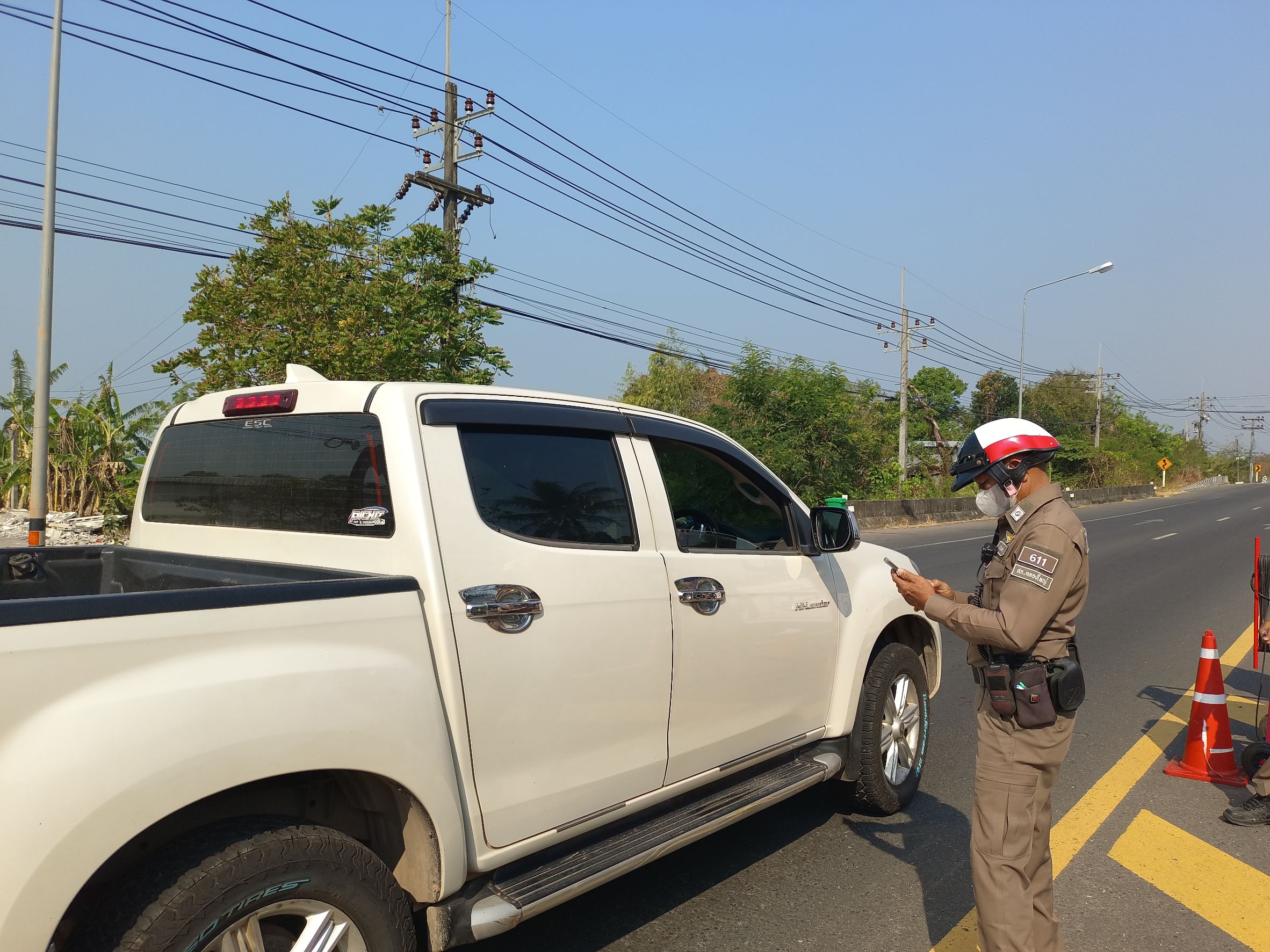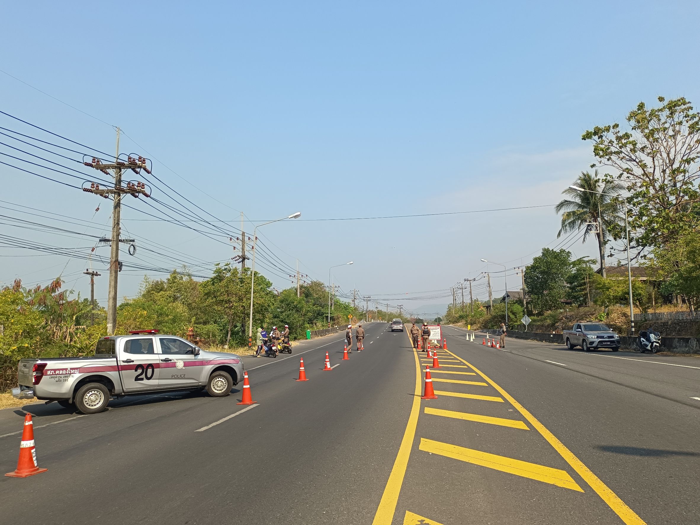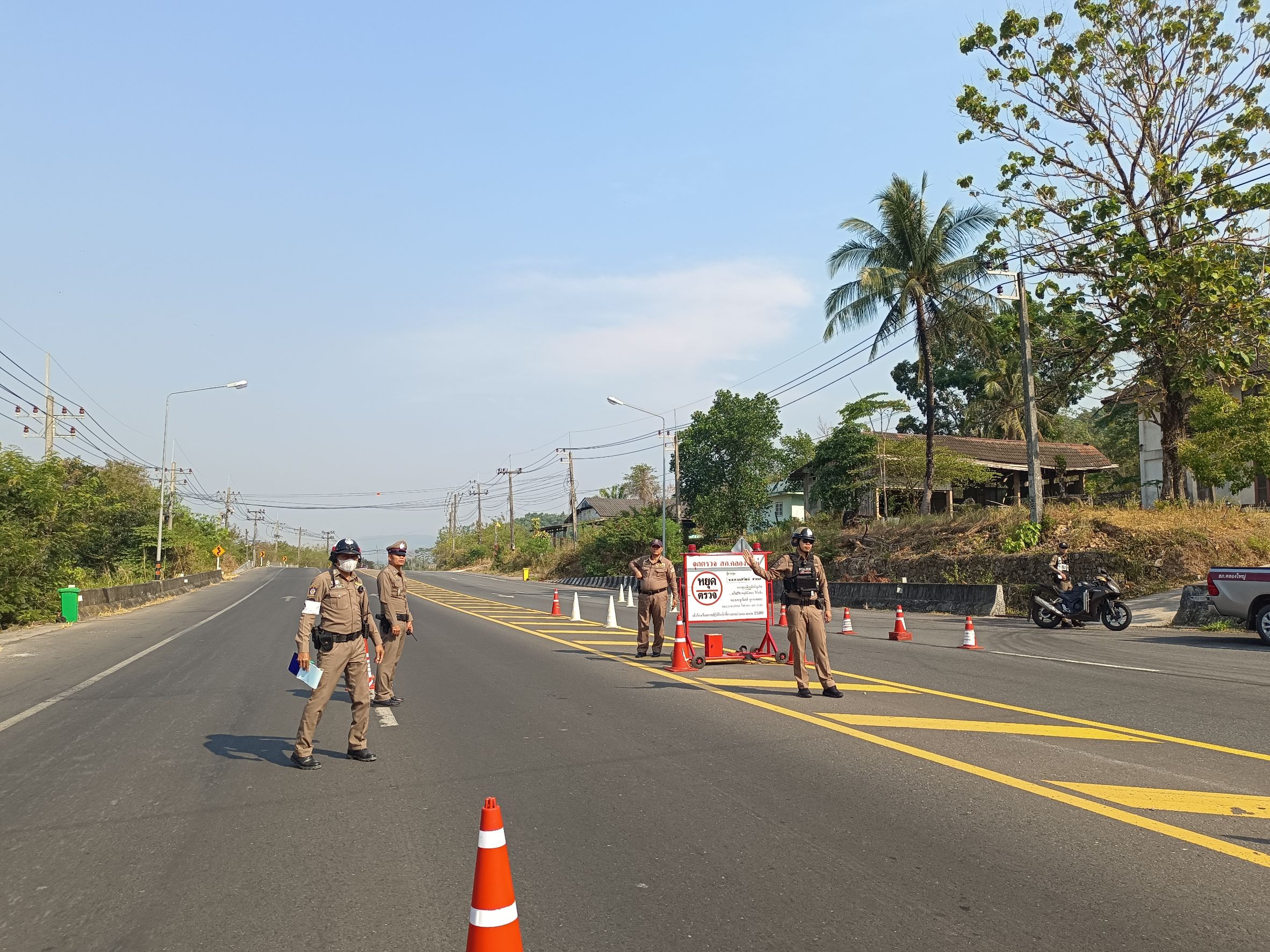 พร้อมสายตรวจรถยนต์และสายตรวจรถจักรยานยนต์ ชุดที่ 3 ว.4 ว.43 จุดตรวจบ้านคลองมะขามเพื่อกวดขันวินัยจราจรและตรวจค้นสิ่งของผิดกฎหมาย