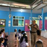 วันนี้ (๘ ก.พ. ๖๗)เวลา ๐๙.๐๑ น. ภายใต้การอำนวยการของ พ.ต.อ.สมชิต วินทะไชย ผกก.สภ.คลองใหญ่ พ.ต.ท.วิทยา คุ้มวงษ์ รอง ผกก.ป. สภ.คลองใหญ่ สั่งการให้ ว่าที่ พ.ต.ต.นนทวัฒน์ สายยศ สวป.สภ.คลองใหญ่ ร.ต.ท.สมบัติ มัยพล รอง สว.จร.สภ.คลองใหญ่ พร้อมสายตรวจจราจร สายตรวจรถยนต์และตู้ยามคลองขุด ว.๔ โรงเรียนบ้านคลองจากเพื่อบรรยายให้ความรู้แก่เด็กนักเรียนชั้นอนุบาล ๒-๓ ในหัวข้อเรื่องยาเสพติดและความปลอดภัยจากคนแปลกหน้า ( หนี ซ่อน สู้ )