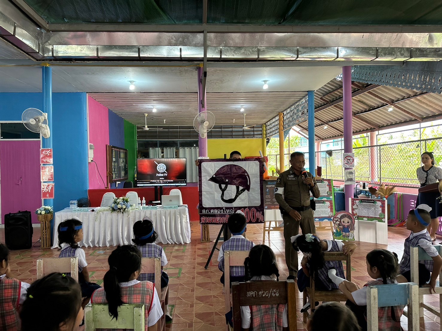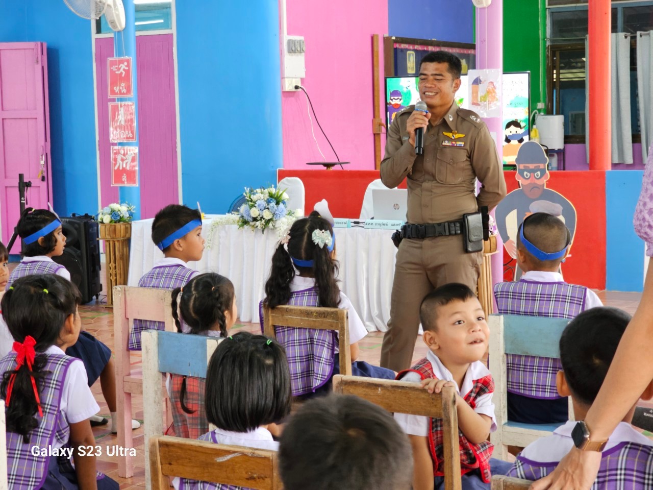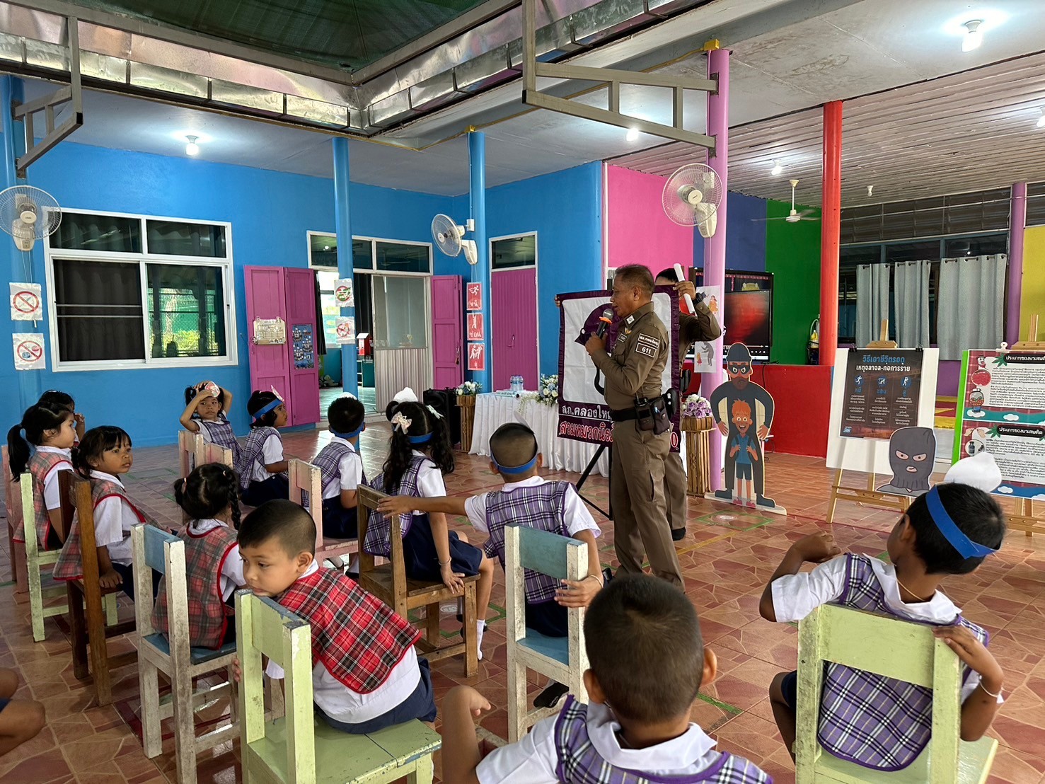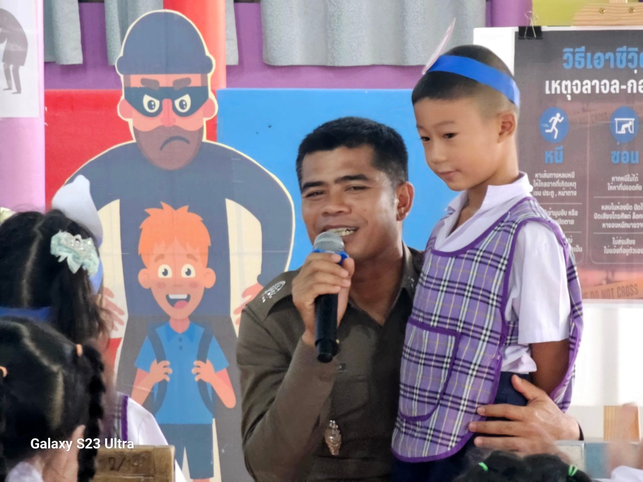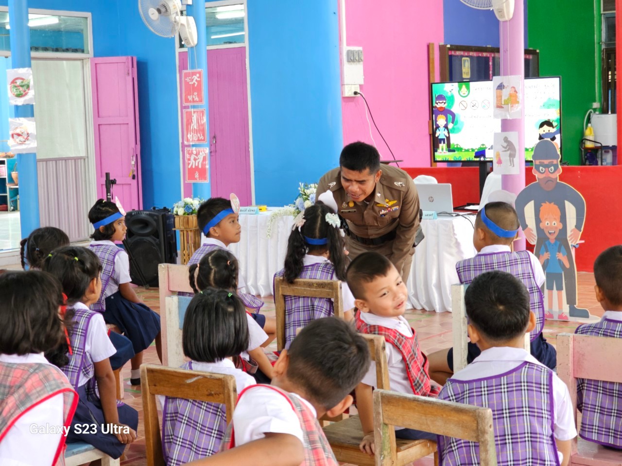 วันนี้ (๘ ก.พ. ๖๗)เวลา ๐๙.๐๑ น. ภายใต้การอำนวยการของ พ.ต.อ.สมชิต วินทะไชย ผกก.สภ.คลองใหญ่ พ.ต.ท.วิทยา คุ้มวงษ์ รอง ผกก.ป. สภ.คลองใหญ่ สั่งการให้ ว่าที่ พ.ต.ต.นนทวัฒน์ สายยศ สวป.สภ.คลองใหญ่ ร.ต.ท.สมบัติ มัยพล รอง สว.จร.สภ.คลองใหญ่ พร้อมสายตรวจจราจร สายตรวจรถยนต์และตู้ยามคลองขุด ว.๔ โรงเรียนบ้านคลองจากเพื่อบรรยายให้ความรู้แก่เด็กนักเรียนชั้นอนุบาล ๒-๓ ในหัวข้อเรื่องยาเสพติดและความปลอดภัยจากคนแปลกหน้า ( หนี ซ่อน สู้ )