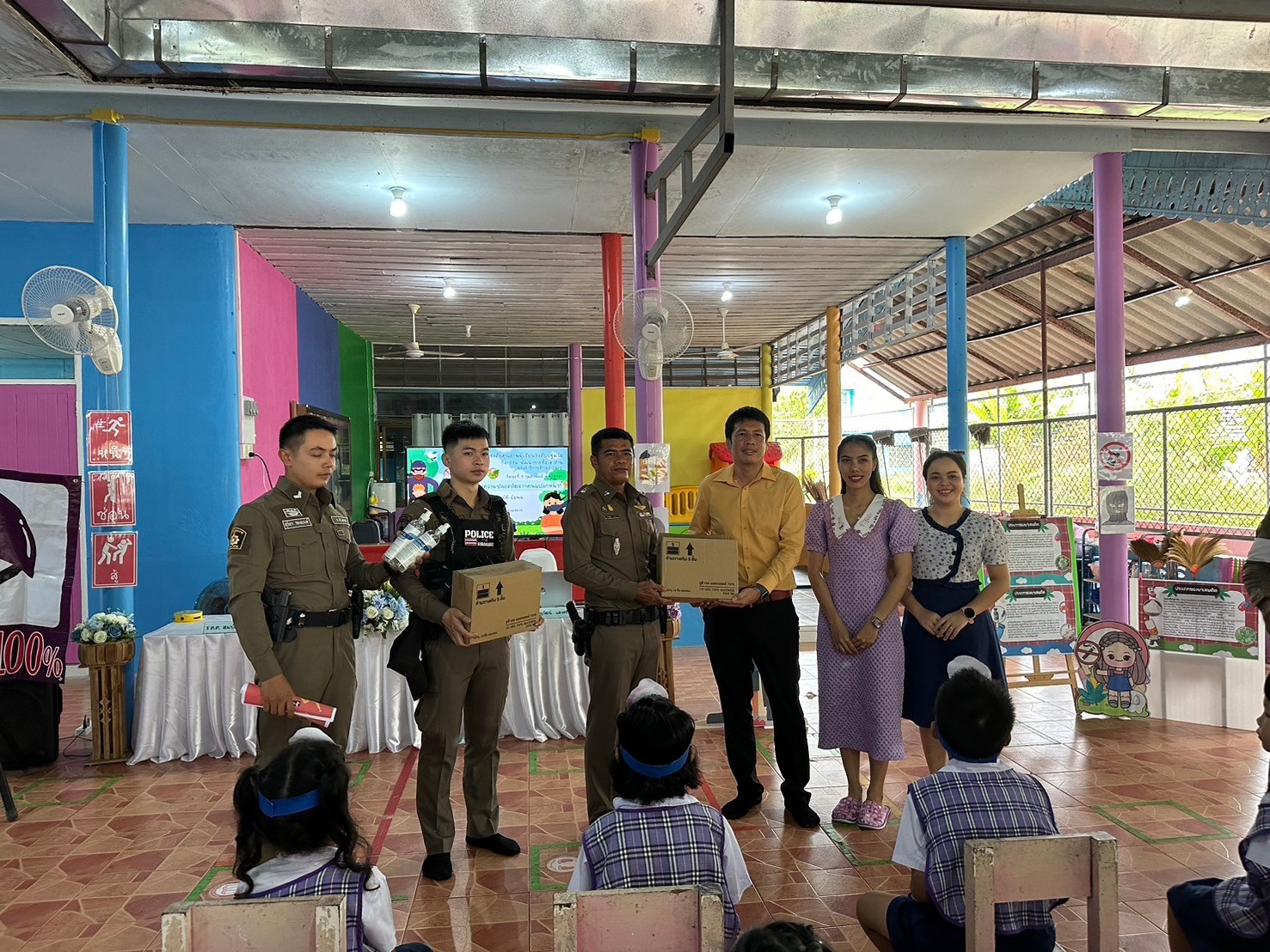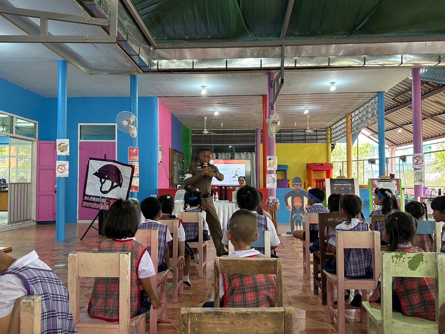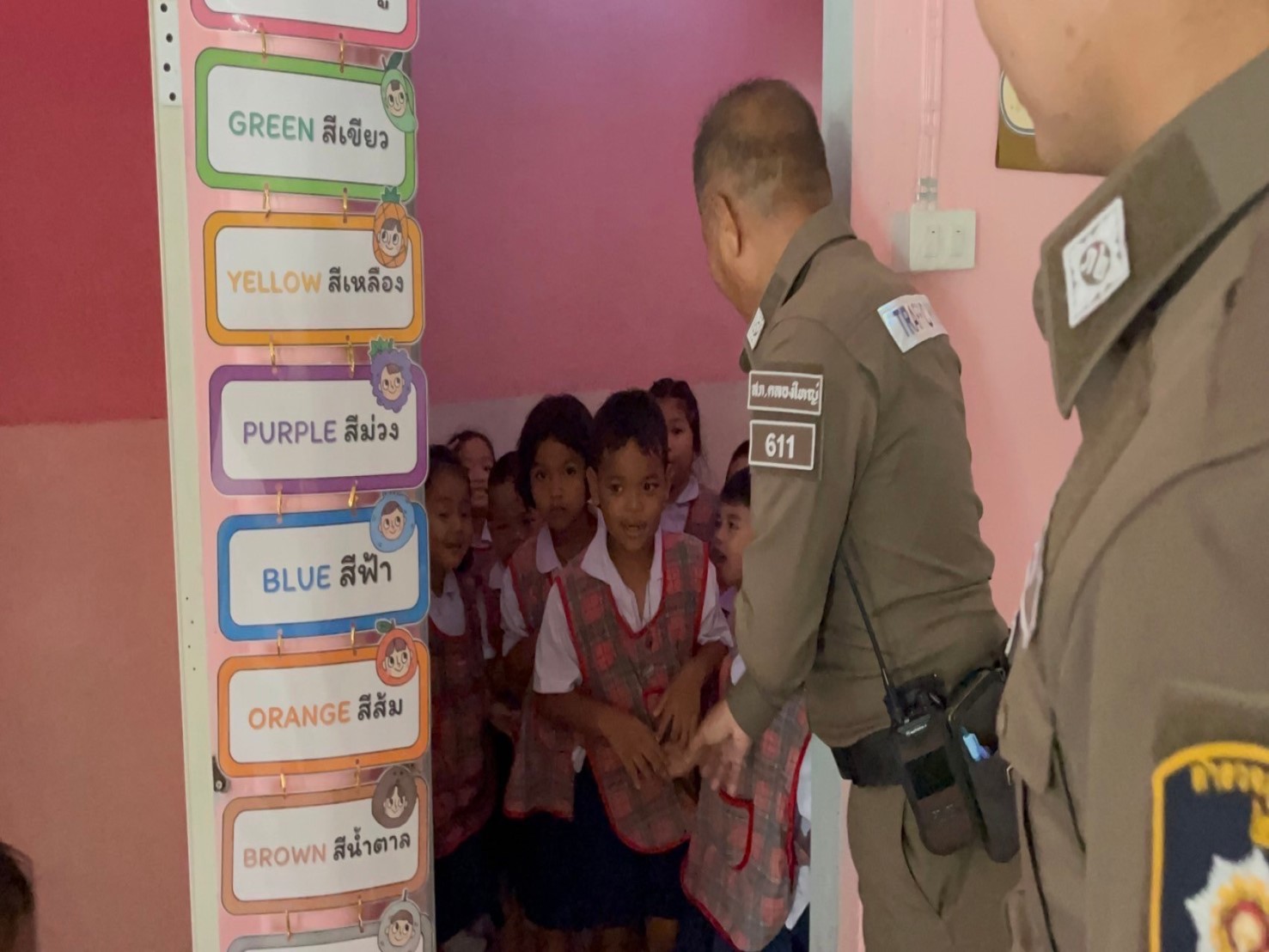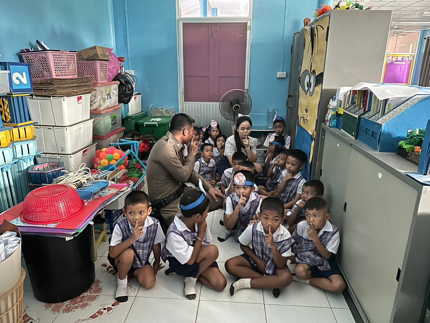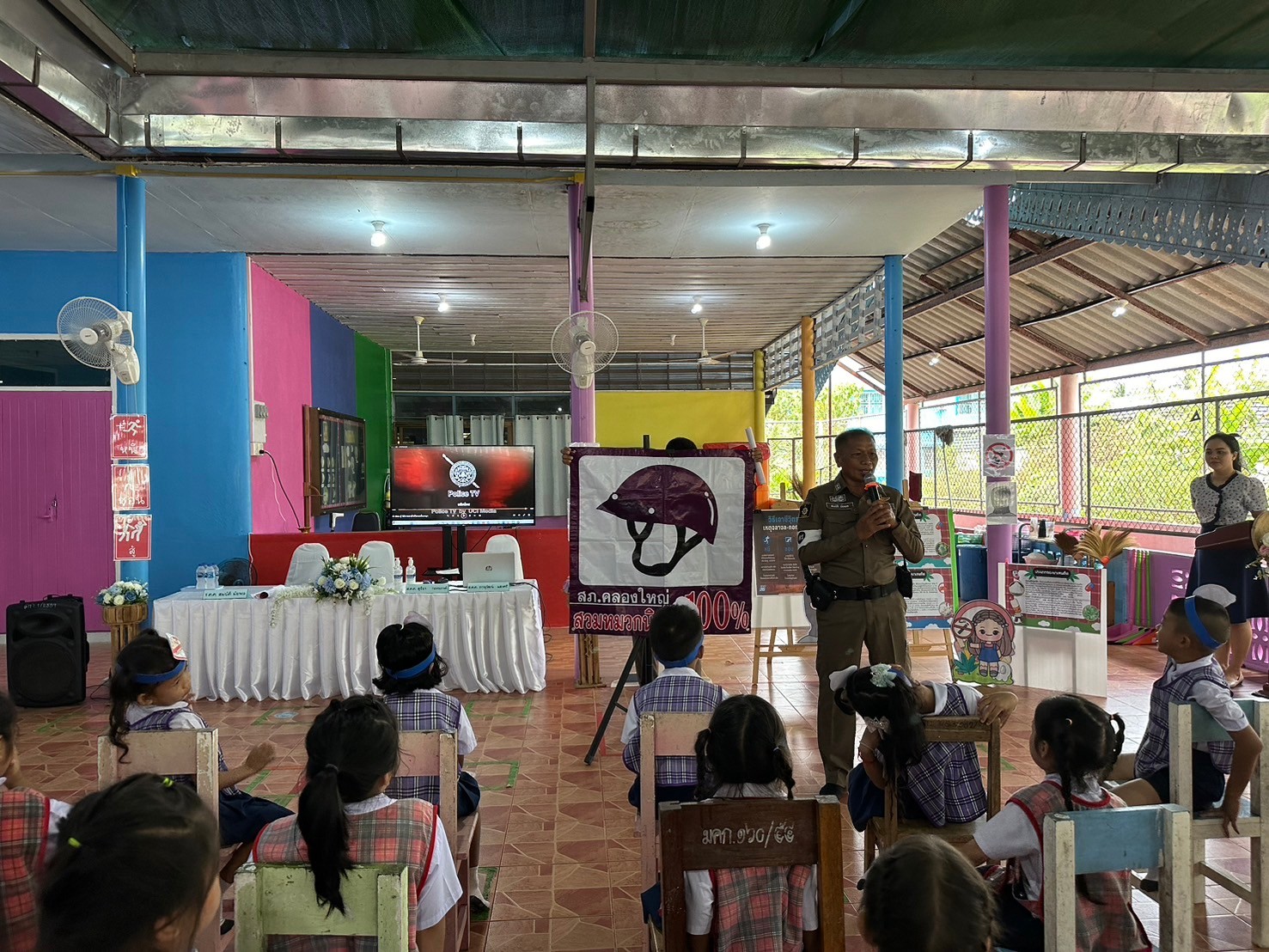 วันนี้ (๘ ก.พ. ๖๗)เวลา ๐๙.๐๑ น. ภายใต้การอำนวยการของ พ.ต.อ.สมชิต วินทะไชย ผกก.สภ.คลองใหญ่ พ.ต.ท.วิทยา คุ้มวงษ์ รอง ผกก.ป. สภ.คลองใหญ่ สั่งการให้ ว่าที่ พ.ต.ต.นนทวัฒน์ สายยศ สวป.สภ.คลองใหญ่ ร.ต.ท.สมบัติ มัยพล รอง สว.จร.สภ.คลองใหญ่ พร้อมสายตรวจจราจร สายตรวจรถยนต์และตู้ยามคลองขุด ว.๔ โรงเรียนบ้านคลองจากเพื่อบรรยายให้ความรู้แก่เด็กนักเรียนชั้นอนุบาล ๒-๓ ในหัวข้อเรื่องยาเสพติดและความปลอดภัยจากคนแปลกหน้า ( หนี ซ่อน สู้ )