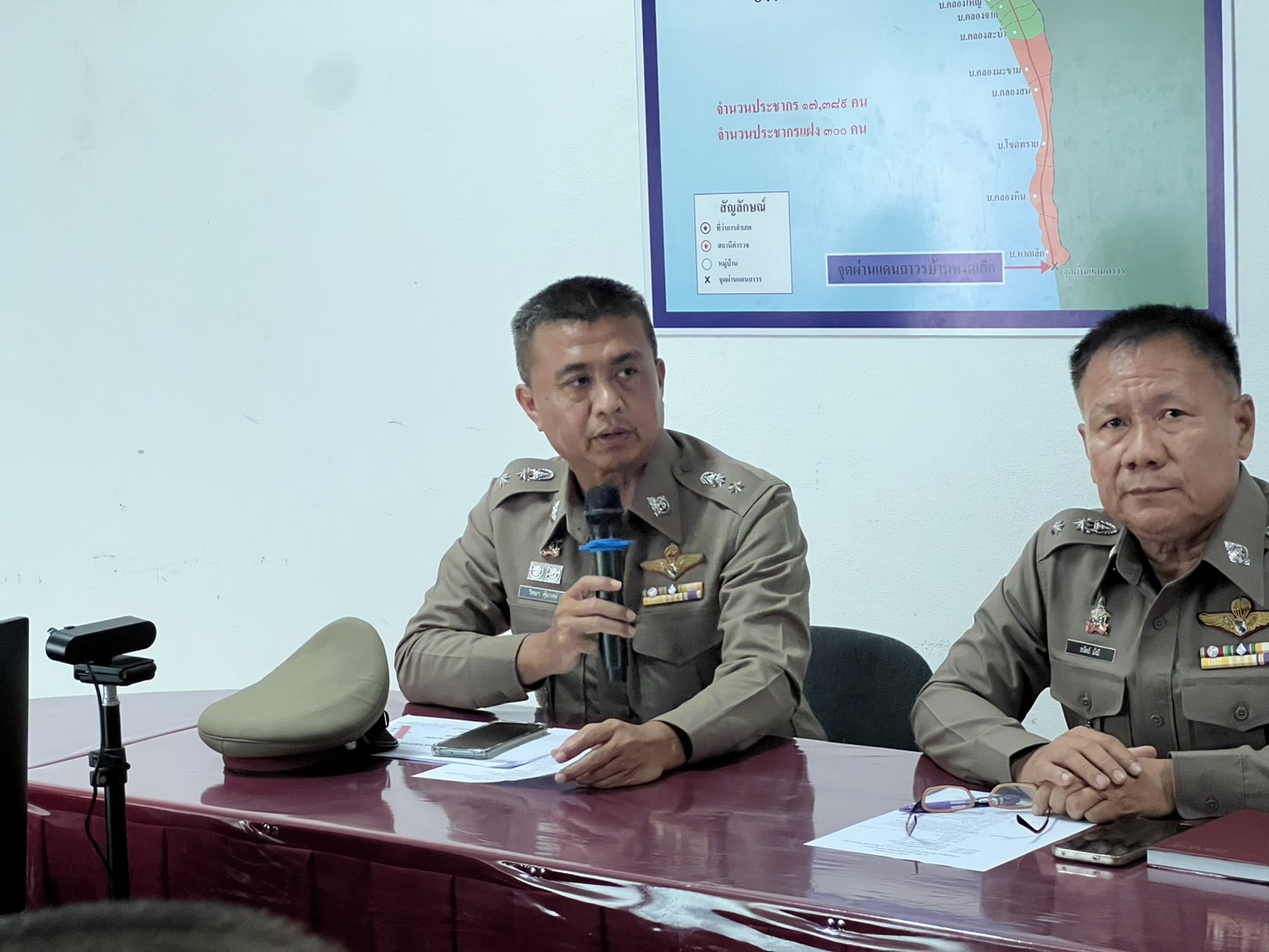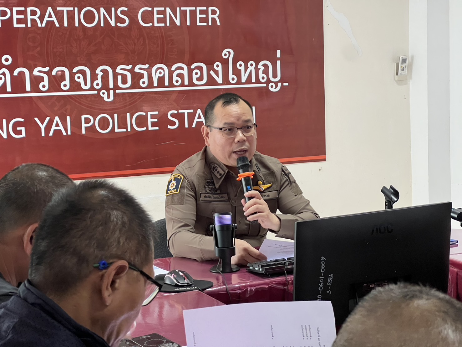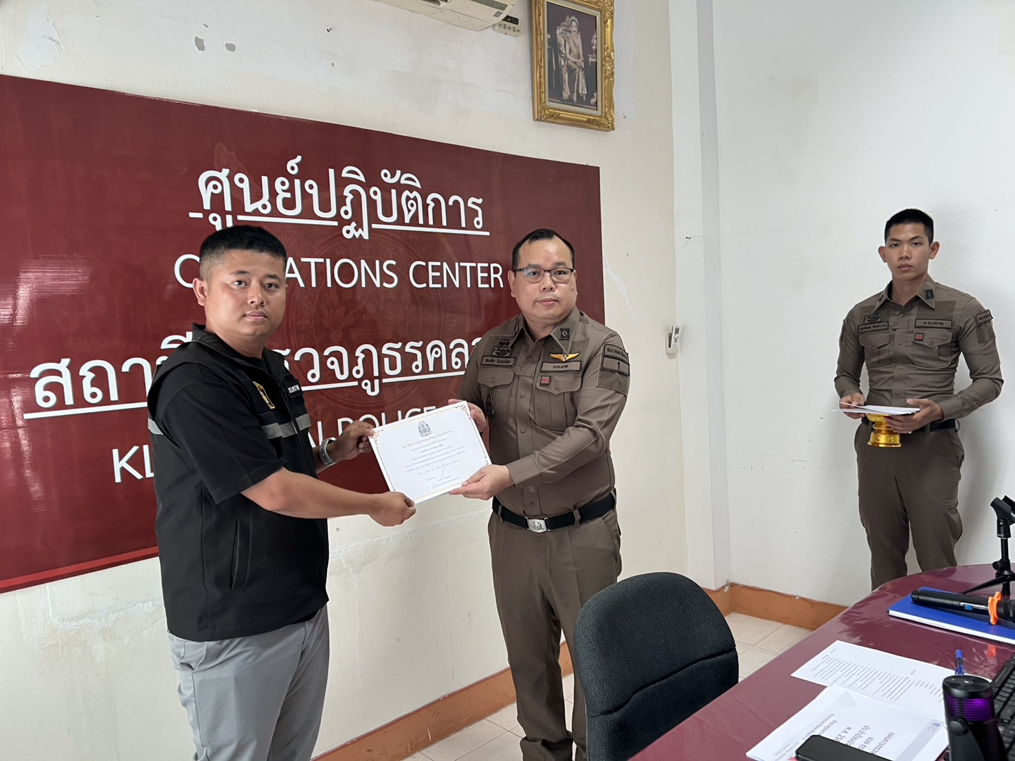 พ.ต.อ.สมชิต วินทะไชย ผกก.สภ.คลองใหญ่ พ.ต.ท.วิทยา คุ้มวงษ์ รอง ผกก.ป.สภ.คลองใหญ่ พ.ต.ท.เสถียร รัชพงษ์ไทย รอง ผกก.สส.สภ.คลองใหญ่ พร้อมด้วยข้าราชการตำรวจ สภ.คลองใหญ่ ร่วม