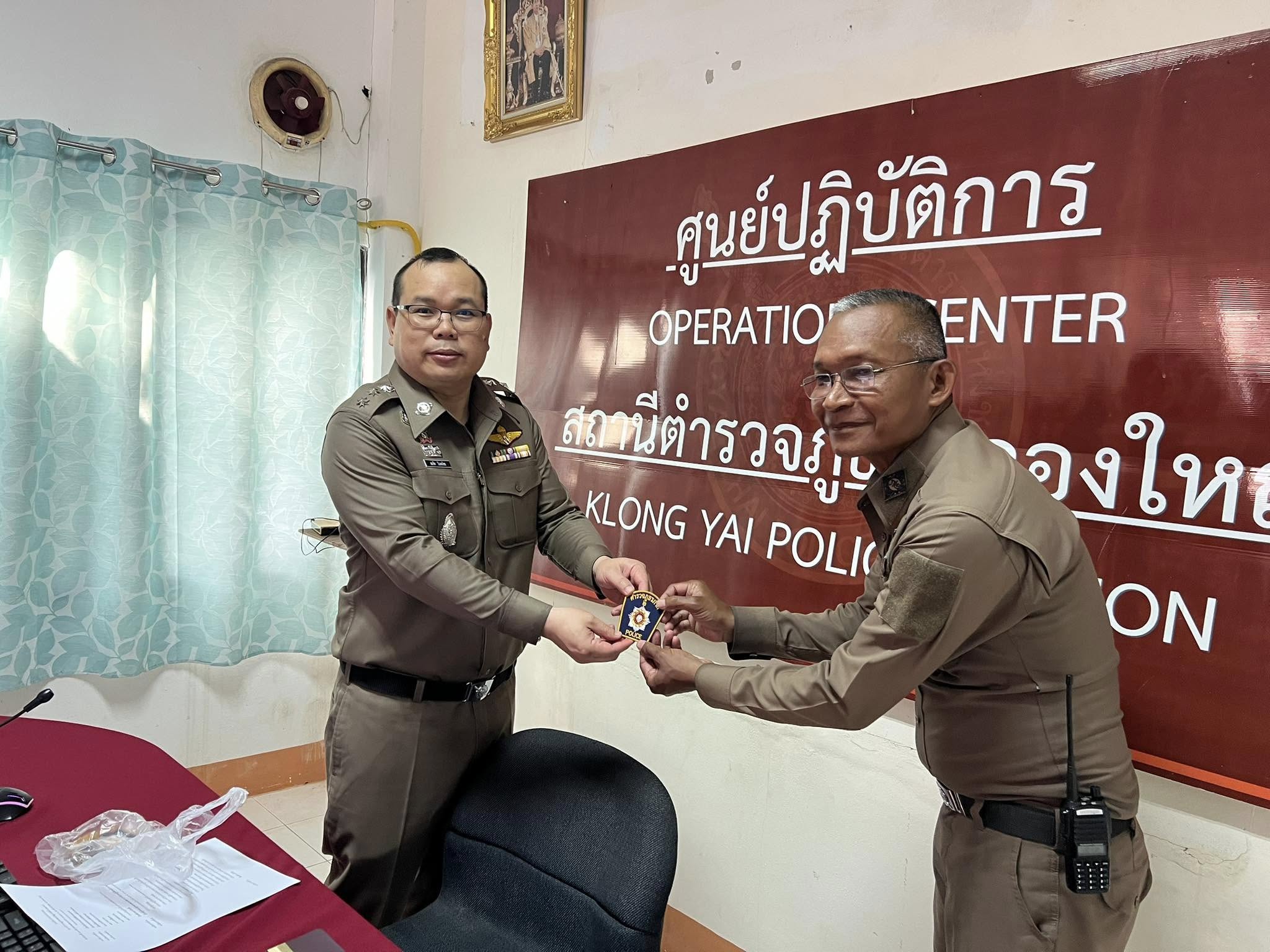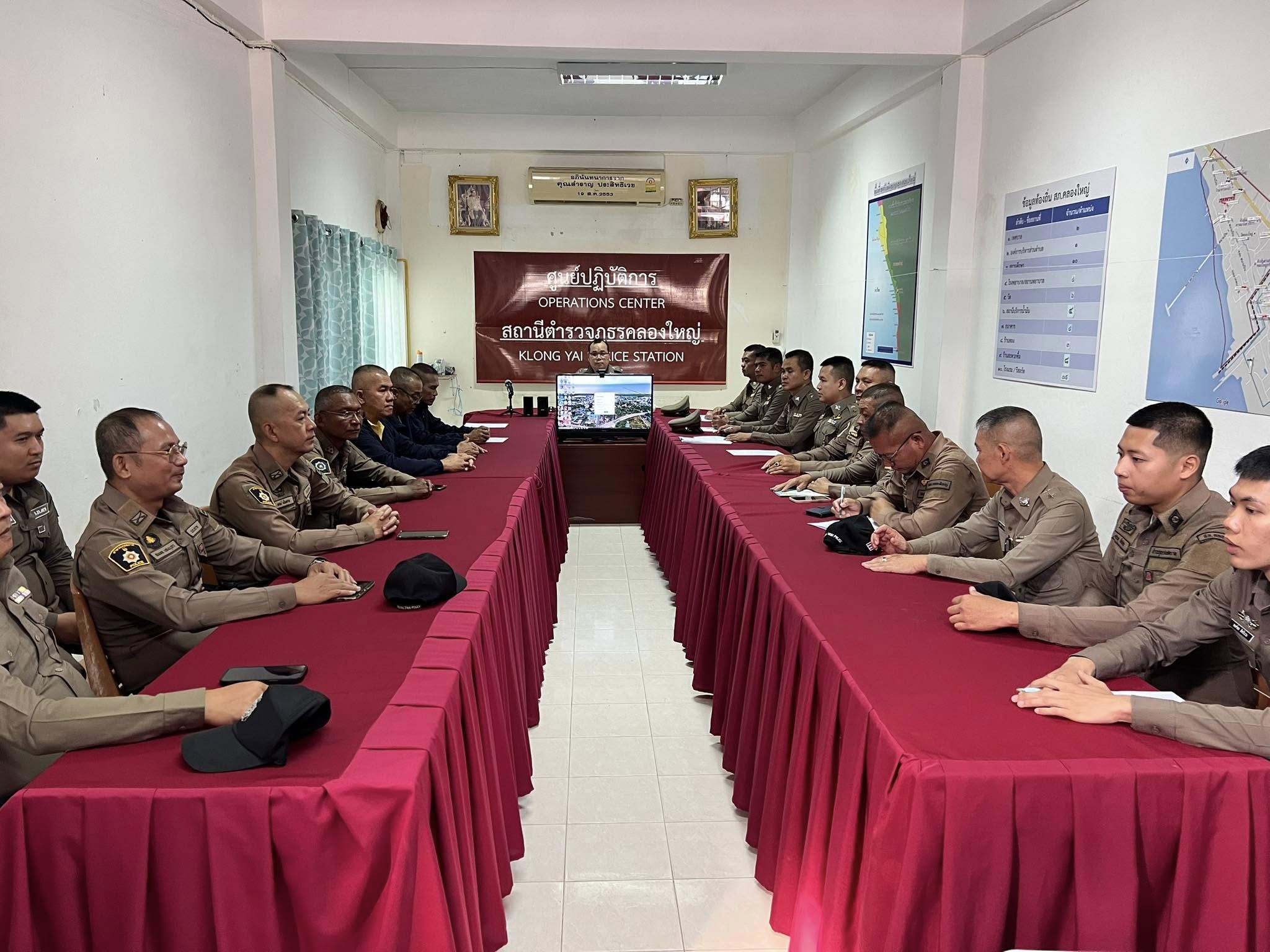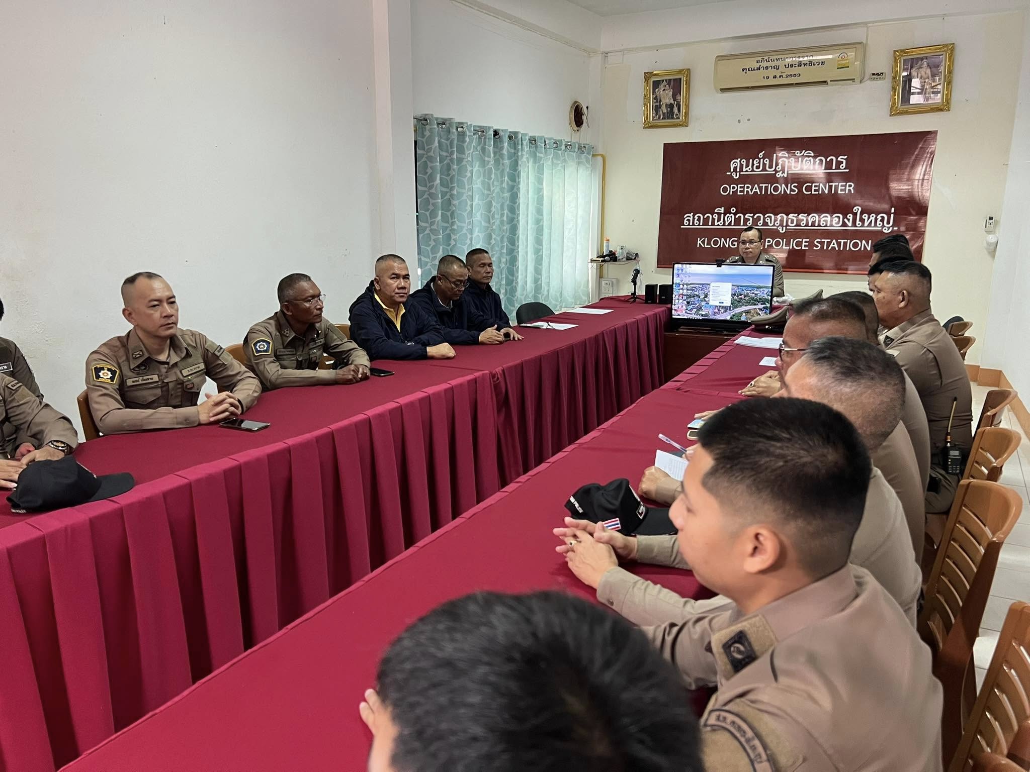 พ.ต.อ.สมชิต วินทะไชย ผกก.สภ.คลองใหญ่ พ.ต.ท.วิทยา คุ้มวงษ์ รอง ผกก.ป.สภ.คลองใหญ่ พ.ต.ท.เสถียร รัชพงษ์ไทย รอง ผกก.สส.สภ.คลองใหญ่ พร้อมด้วยข้าราชการตำรวจ สภ.คลองใหญ่ ร่วม