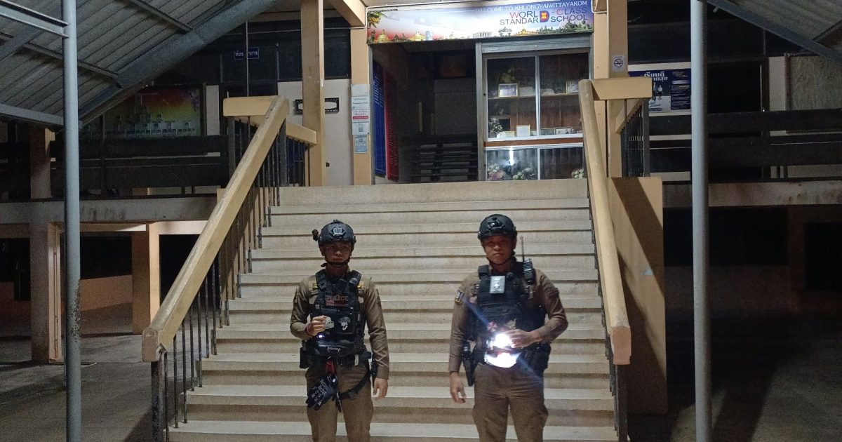 ออกตรวจป้องกันเหตุอาชญากรรม ในเขตพื้นที่รับผิดชอบ 17 ตุลาคม 2025 โดย khlongyai_police / งานป้องกันปราบปราม วันนี้ ( ๑๖ ต.ค. ๖๘ ) ๐๒.๓๐น. ภายใต้การอำนวยการของ พ.ต.อ.สมชิต วินทะไชย ผกก.สภ.คลองใหญ่พ.ต.ท.วิทยา คุ้มวงษ์ รอง ผกก. ป.สภ.คลองใหญ่ พ.ต.ต.นนทวัฒน์ สายยศ สว.ป.สภ.คลองใหญ่ ร.ต.ท.สัญชัย ยาสระคู รอง สว.ป.สภ.คลองใหญ่(ร้อยเวร๒๐) สั่งการให้ สายตรวจชุดที่ ๓ ว.๔ ป้องกันเหตุอาชญากรรม โรงเรียนอนุบาลวัดคลองใหญ่ โรงเรียนคลองใหญ่วิทยาคม โรงเรียนบ้านเนินตาล เหตุการณ์ปกติ