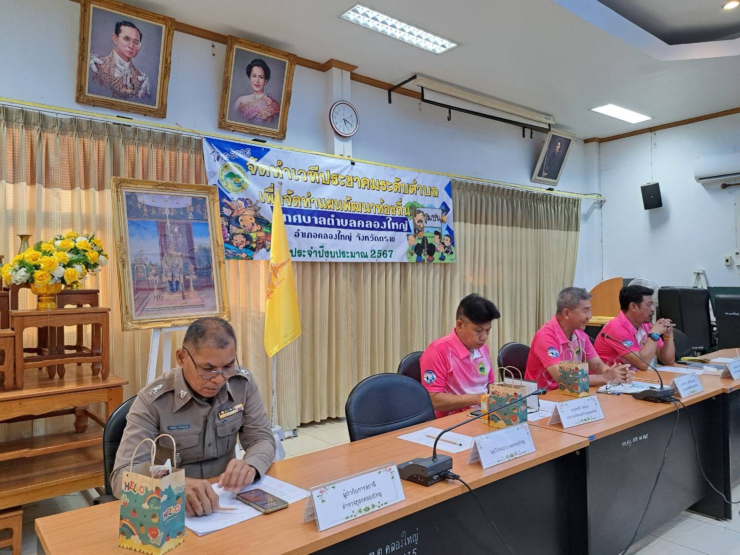 วันนี้ 9 เม.ย.2657 เวลา 17.00 น. พ.ต.ต.สิริภัทร กลั่นผักแว่น สว.ธร.สภ.คลองใหญ่ เข้าร่วมประชุมประชาคม
