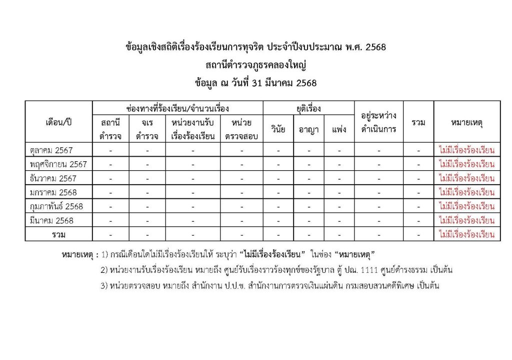 ข้อมูลสถิติเรื่องร้องเรียนการทุจริตประจำปี