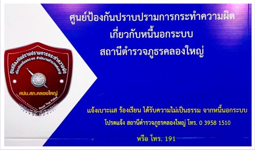 สภ.คลองใหญ่ ประชาสัมพันธ์ ผู้ได้รับความเดือดร้อนหนี้นอกระบบ ด้วยเหตุอันไม่เป็นธรรม ถูกข่มขู่คุกคามทว