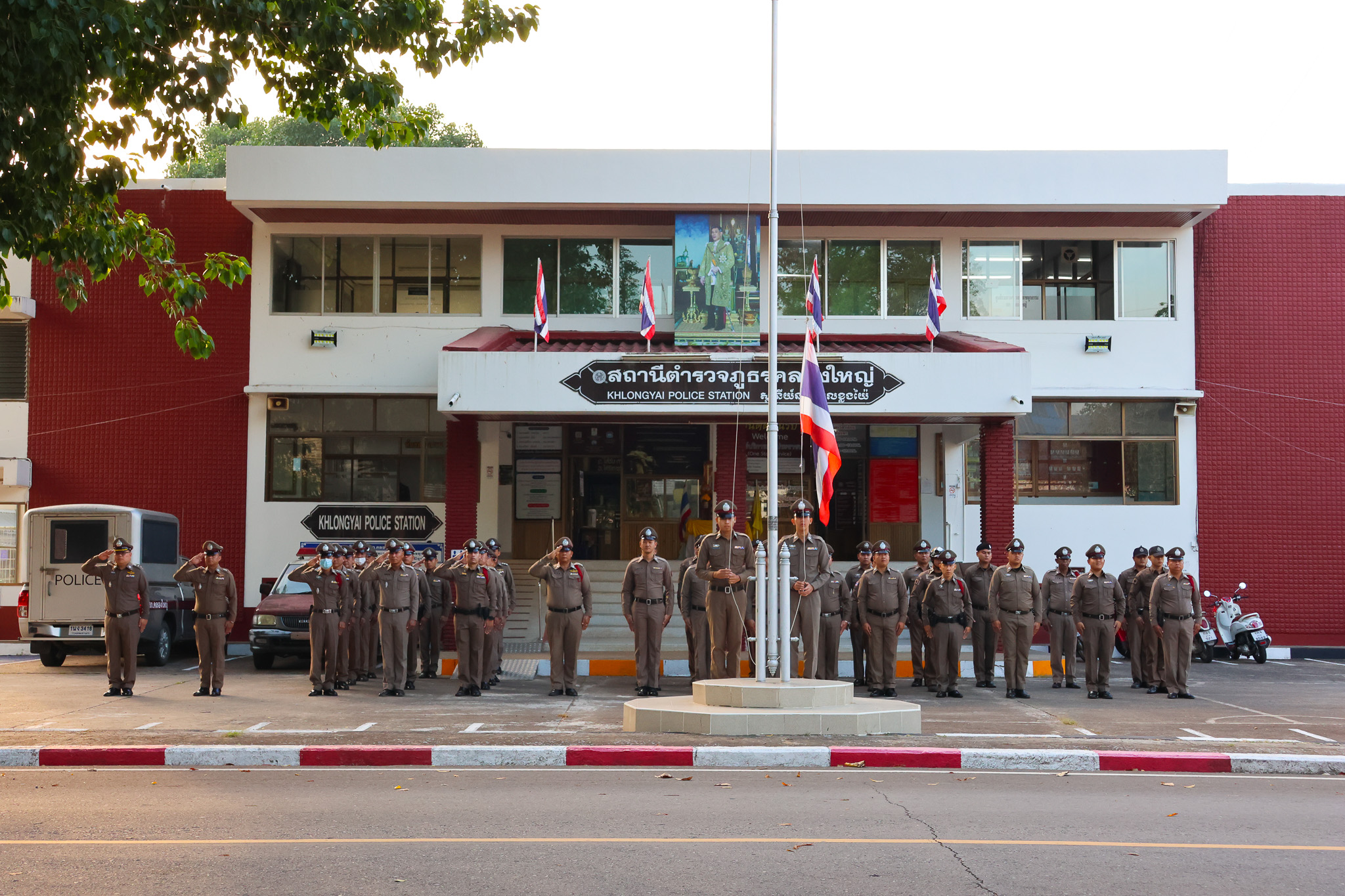 วันนี้(๓ มิ.ย.๖๖) เวลา ๐๗.๓๐ น.พ.ต.อ.สมชิต วินทะไชยผกก.สภ.คลองใหญ่พร้อมด้วยข้าราชการตำรวจจิตอาสาสถาน