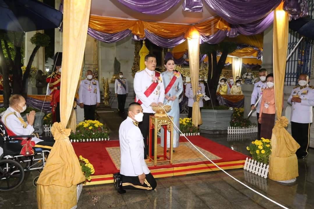 บรรยากาศประชาชนเฝ้ารอรับเสด็จในหลวง พระราชินี ในโอกาสเสด็จพระราชดำเนินไปทรงบำเพ็ญพระราชกุศลถวายผ้าพร